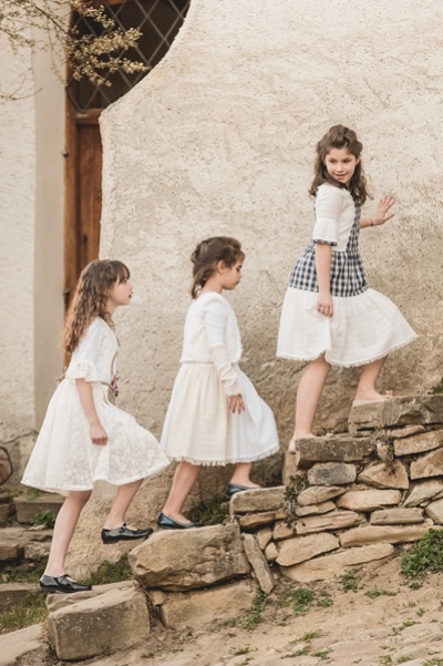 These delightful dresses emphasize the true value and charm of hand-made embroidery. The colorful details bring you closer to the natural world of the countryside.